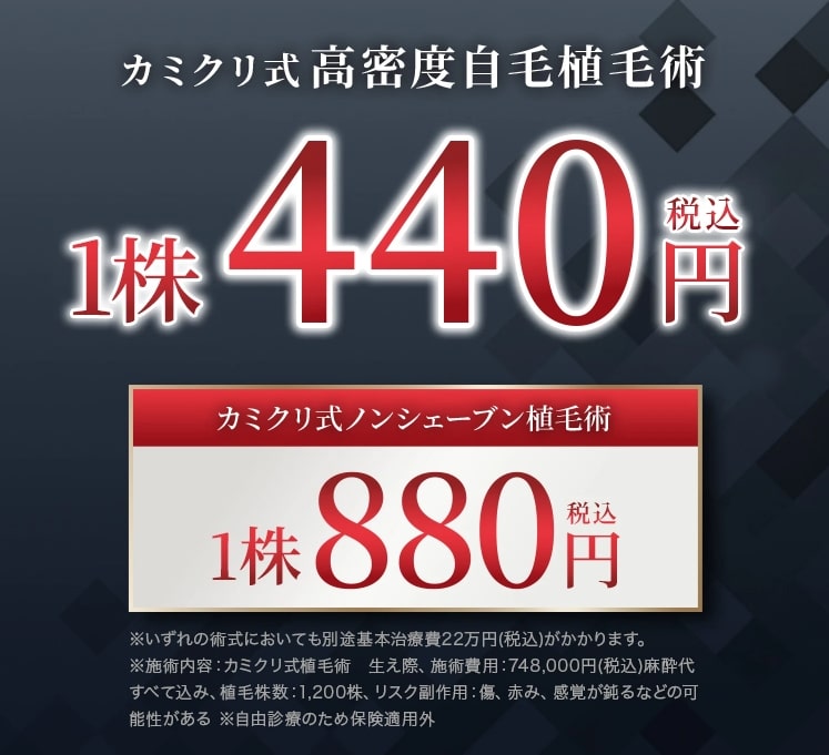 実際、この基本料金自体は他の大手植毛クリニックと同じ水準です。