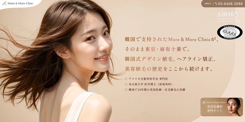 More & More Clinicは、美容大国である韓国の先進的な植毛技術を取り入れており、女性にも人気のクリニックです。