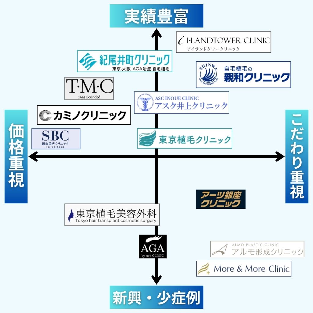 東京には、多くの自毛植毛クリニックがありますが、自分の予算や希望に合ったプランなのかを最優先に、信頼性の高いクリニックを選ぶことが重要です。